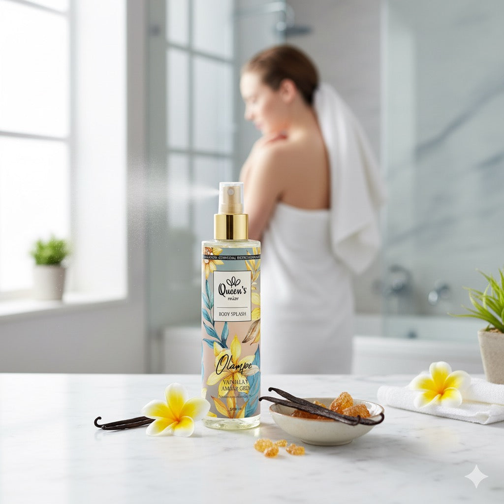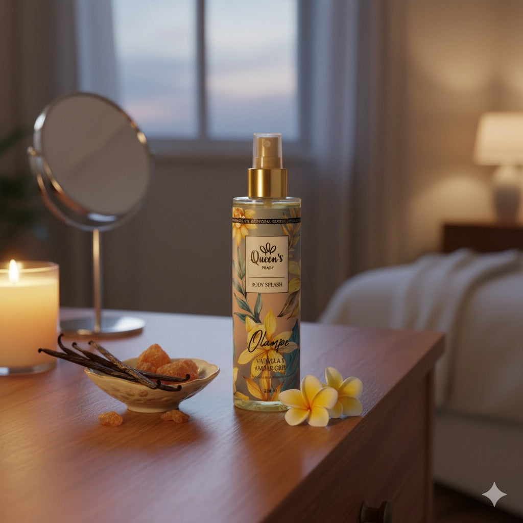 Découvrez OLAMPE, une brume corporelle parfumée en format 250 ml. Elle diffuse un sillage sensuel et raffiné, où la fraîcheur florale se mêle à la gourmandise de la vanille et à la chaleur des bois précieux. Une fragrance captivante et élégante qui sublime le corps, les cheveux et les vêtements à chaque vaporisation.